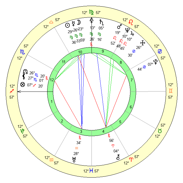 | Moon | 23 Virgo 53 | 21 Libra 57 | 11 Leo 15 |