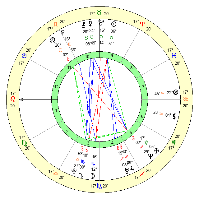 | Moon | 12 Scorpio 11 | 6 Taurus 15 | 14 Taurus 29 |