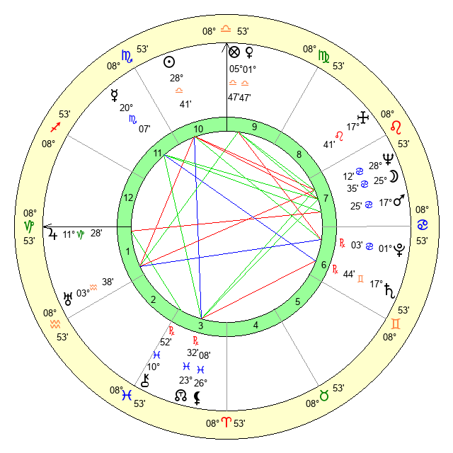 | Mars | 17 Cancer 26 | 20 Scorpio 53 | 5 Cancer 41 |