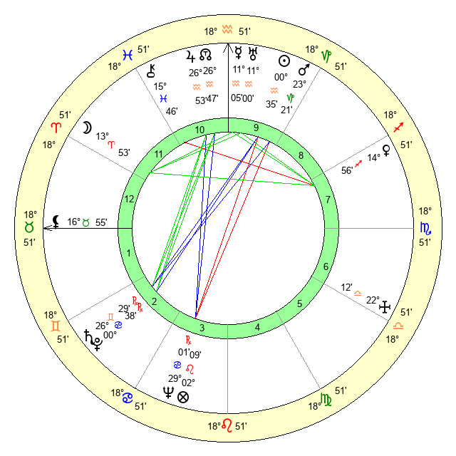 | Moon | 13 Aries 54 | 0 Scorpio 12 | 23 Aries 1 |