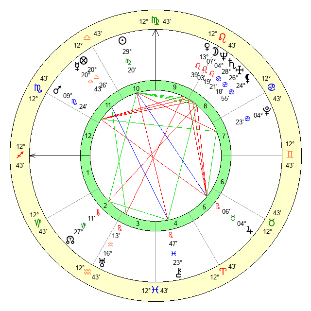 | Mercury | 20 Libra 43 | 7 Libra 30 | 5 Aquarius 37 |