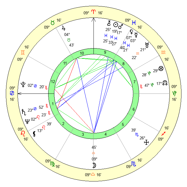 | Mars | 17 Pisces 28 | 18 Cancer 15 | 8 Gemini 23 |