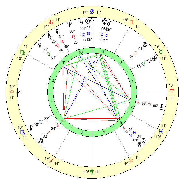 | Mars | 5 Cancer 22 | 17 Virgo 1 | 12 Virgo 20 |