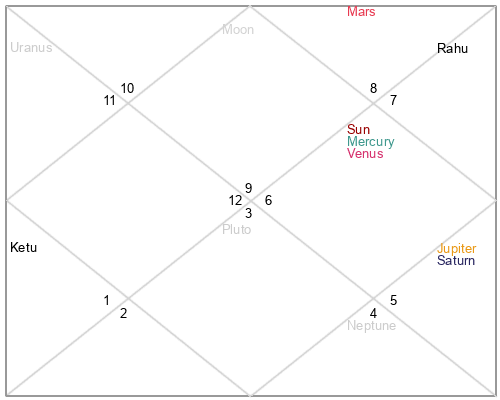 | Rahu | 8 Scorpio 22 | 17 Pisces 32 | 2 Scorpio 48 |