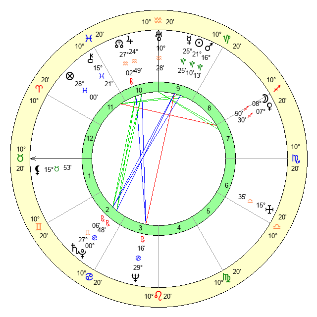 | Uranus | 10 Aquarius 26 | 27 Taurus 41 | 15 Aquarius 29 |
