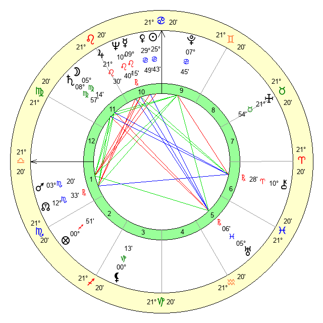 | Moon | 5 Virgo 18 | 5 Taurus 14 | 3 Cancer 2 |