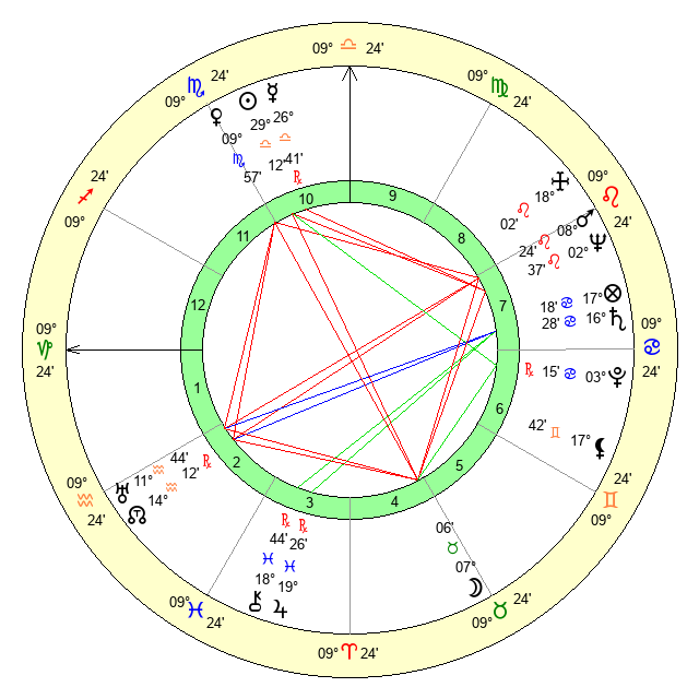 | Neptune | 2 Leo 38 | 29 Pisces 57 | 0 Leo 45 |