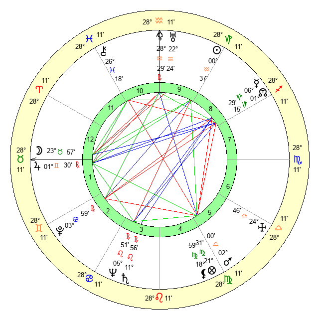 | Moon | 23 Taurus 59 | 27 Libra 15 | 18 Aries 12 |