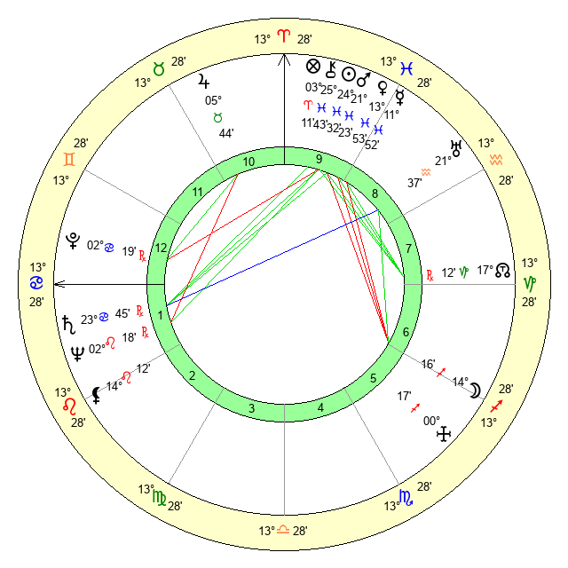 | Sun | 24 Pisces 33 | 25 Pisces 22 | 9 Cancer 15 |