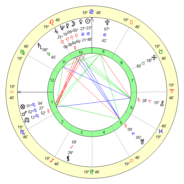 | Jupiter | 20 Leo 54 | 8 Cancer 22 | 12 Virgo 31 |