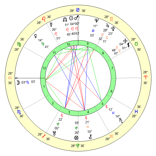 | Moon | 3 Scorpio 3 | 23 Virgo 28 | 21 Pisces 38 |