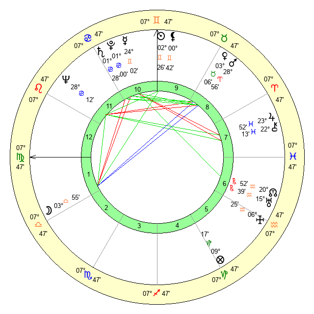 | Sun | 2 Gemini 25 | 3 Gemini 46 | 17 Virgo 51 |
