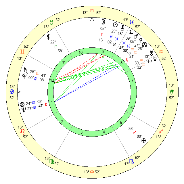 | Jupiter | 9 Pisces 31 | 13 Gemini 51 | 27 Pisces 52 |