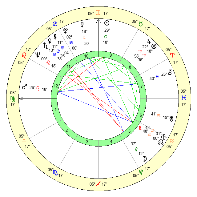 | Sun | 29 Taurus 18 | 29 Taurus 56 | 13 Virgo 44 |
