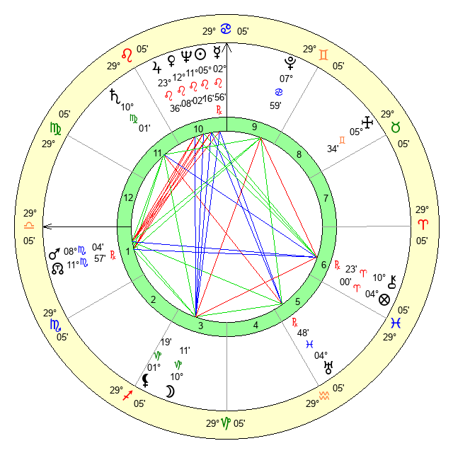 | Sun | 5 Leo 16 | 5 Leo 52 | 18 Scorpio 0 |