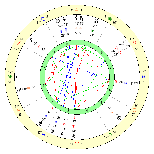 | Jupiter | 0 Scorpio 51 | 24 Cancer 58 | 17 Scorpio 56 |
