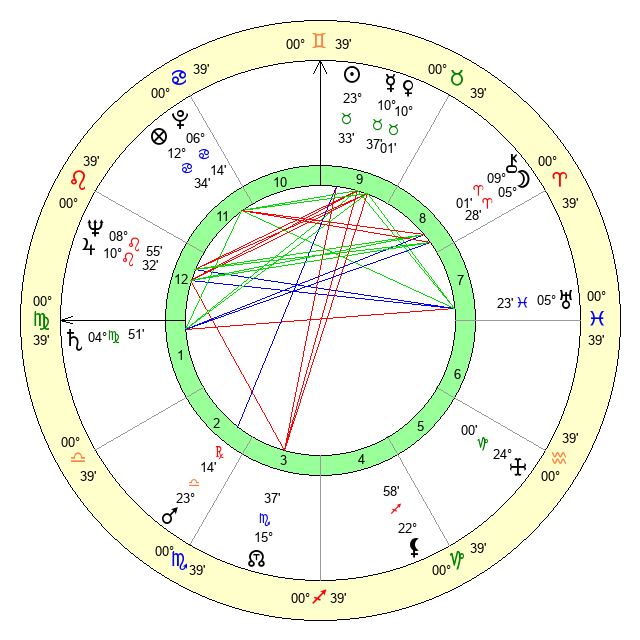 | Moon | 5 Aries 22 | 16 Sagittarius 18 | 12 Aquarius 59 |