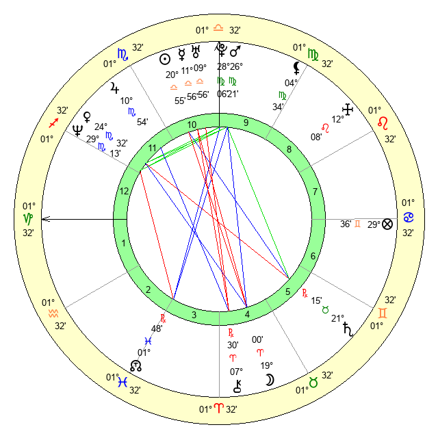 | Venus | 24 Scorpio 32 | 1 Libra 1 | 10 Scorpio 55 |