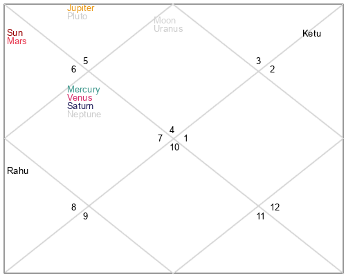 | Ketu | 20 Gemini 27 | 16 Virgo 32 | 16 Gemini 45 |