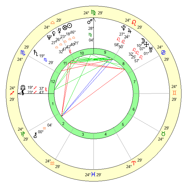 | Mars | 28 Virgo 4 | 12 Scorpio 21 | 13 Scorpio 15 |