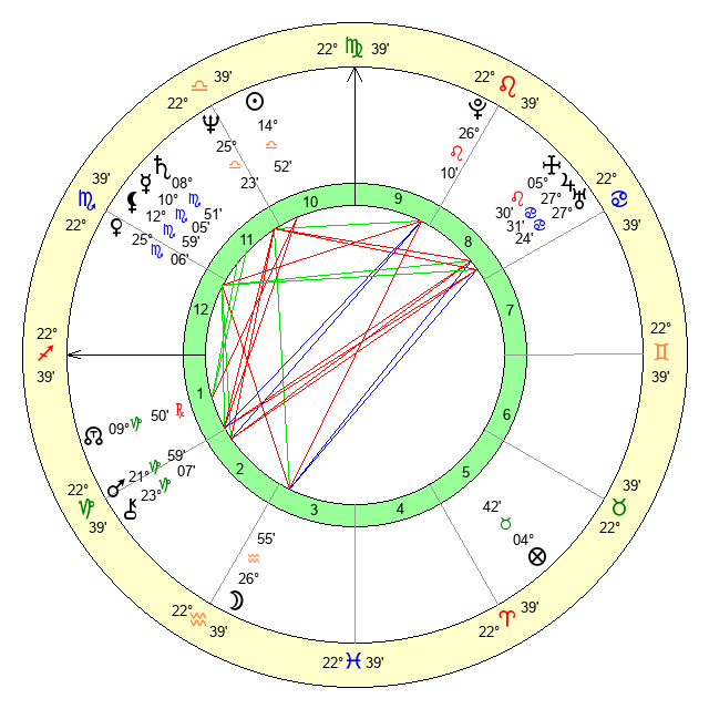 | Venus | 25 Scorpio 5 | 23 Virgo 35 | 17 Scorpio 42 |