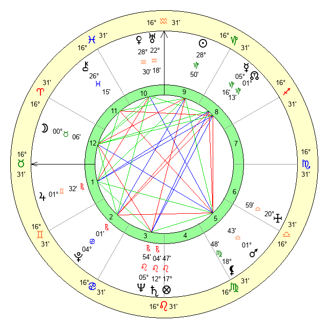 | Moon | 0 Taurus 6 | 6 Libra 37 | 22 Pisces 16 |