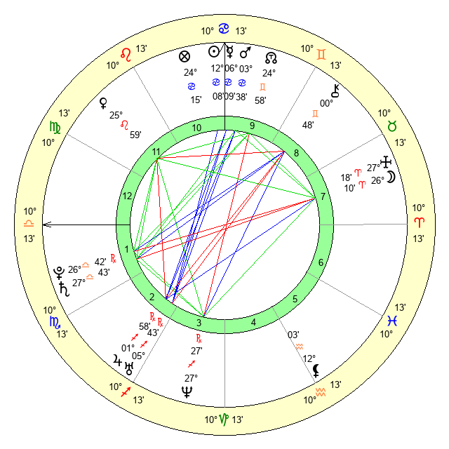 | Sun | 12 Cancer 9 | 12 Cancer 58 | 22 Leo 18 |