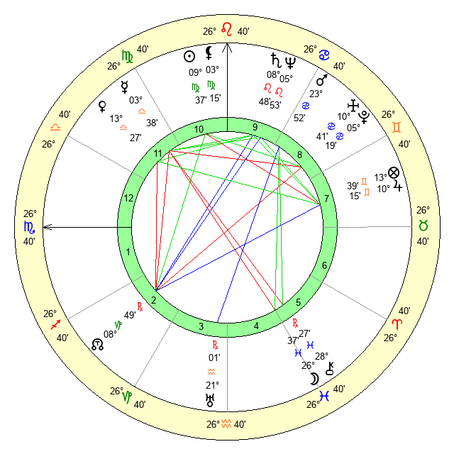 | Mars | 23 Cancer 52 | 17 Libra 2 | 22 Virgo 40 |