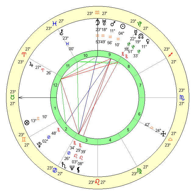 | Mars | 11 Aquarius 56 | 22 Cancer 53 | 5 Taurus 49 |