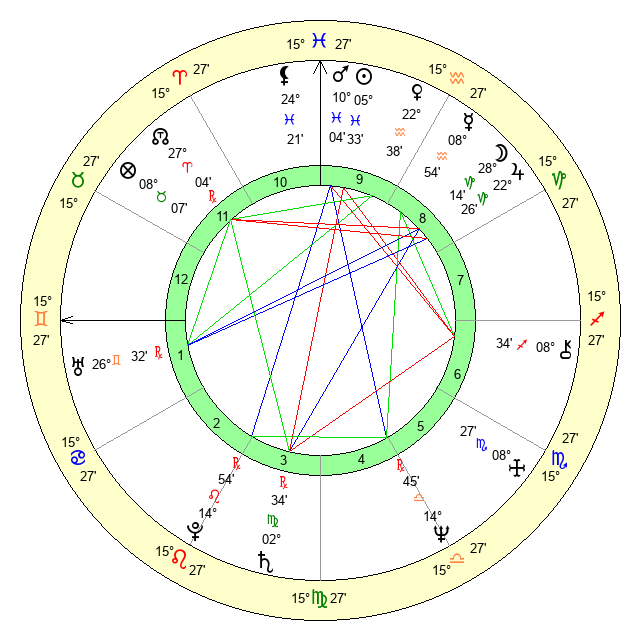 | Jupiter | 22 Capricorn 21 | 11 Gemini 56 | 1 Aquarius 56 |