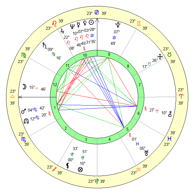 | Moon | 15 Libra 58 | 18 Gemini 17 | 15 Leo 57 |