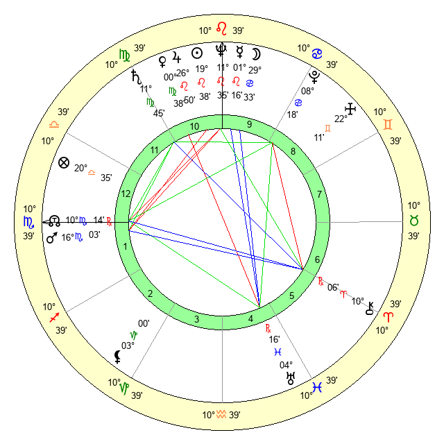 | Venus | 0 Virgo 39 | 14 Cancer 37 | 9 Capricorn 43 |