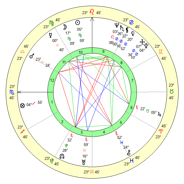 | Moon | 17 Virgo 18 | 19 Scorpio 37 | 12 Virgo 41 |