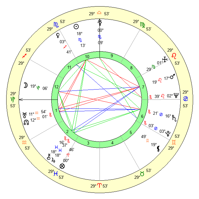 | Neptune | 2 Leo 40 | 29 Pisces 35 | 0 Leo 19 |