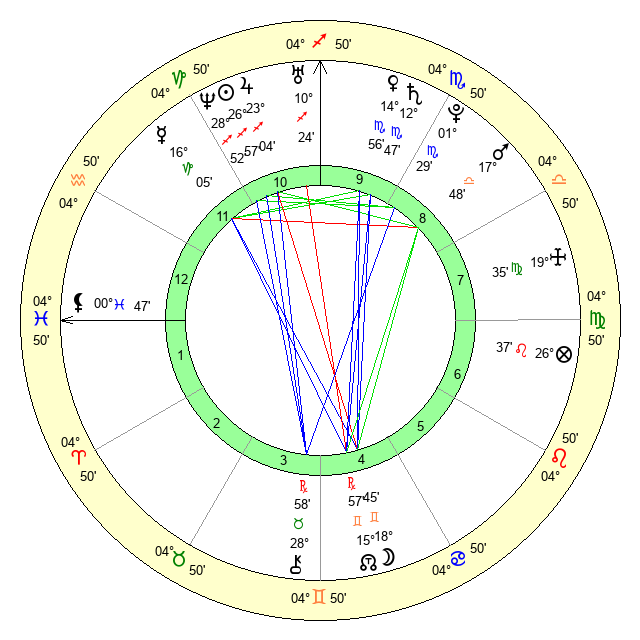 | Saturn | 13 Scorpio 7 | 13 Pisces 37 | 16 Scorpio 7 |