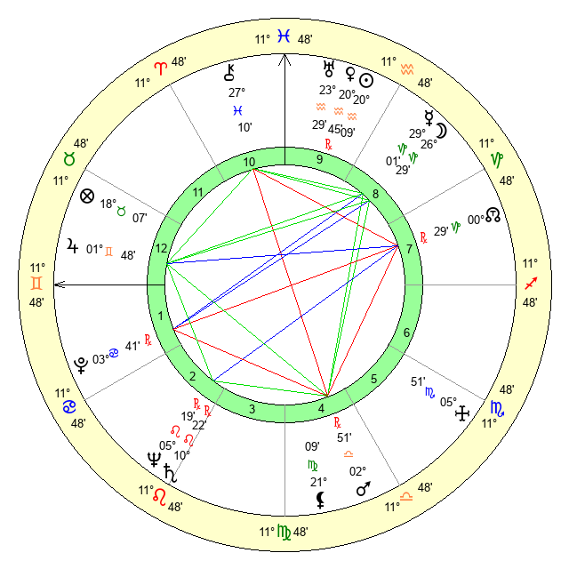 | Sun | 20 Aquarius 9 | 21 Aquarius 12 | 5 Gemini 34 |