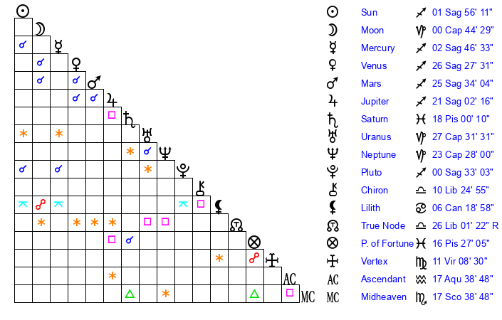Pluto | 0 Sagittarius 32 | 0 Aquarius 5 | 1 Sagittarius 39 |