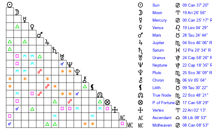 Moon | 19 Aries 30 | 27 Virgo 56 | 2 Gemini 53 |