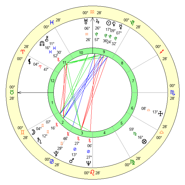 | Pluto | 29 Gemini 46 | 2 Aquarius 57 | 29 Gemini 29 |