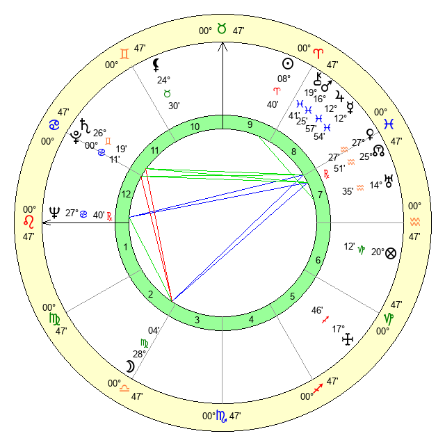 | Moon | 28 Virgo 7 | 24 Aries 8 | 6 Libra 31 |