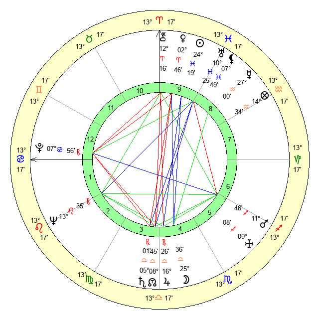 | Sun | 24 Pisces 20 | 25 Pisces 22 | 4 Cancer 17 |