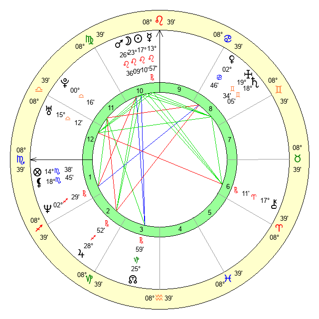 | Mercury | 13 Leo 56 | 4 Leo 23 | 17 Libra 37 |