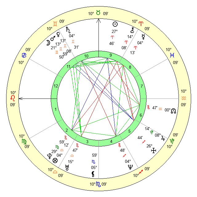 | Sun | 27 Aries 46 | 27 Aries 56 | 18 Gemini 55 |
