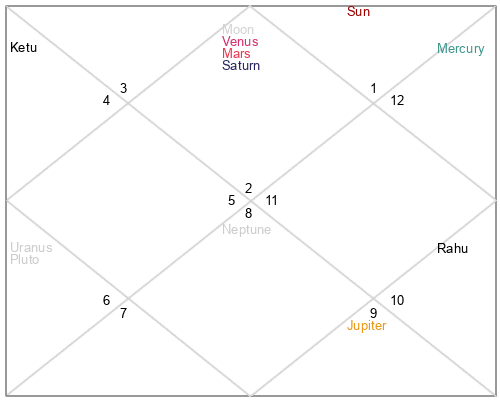 | Ketu | 0 Leo 55 | 25 Virgo 50 | 28 Cancer 7 |