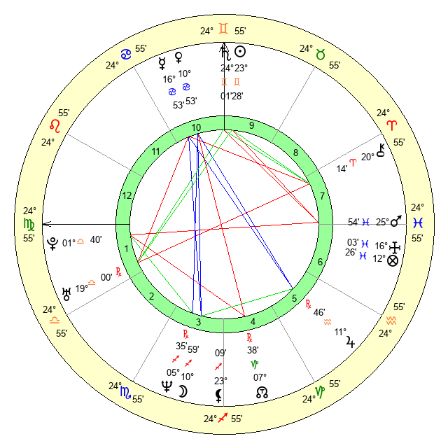 | Sun | 23 Gemini 28 | 23 Gemini 53 | 13 Leo 6 |