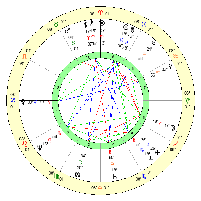 | Sun | 18 Pisces 6 | 19 Pisces 22 | 27 Gemini 22 |