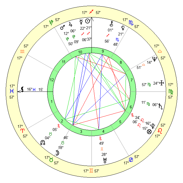 | Saturn | 6 Virgo 41 | 25 Pisces 17 | 2 Virgo 47 |