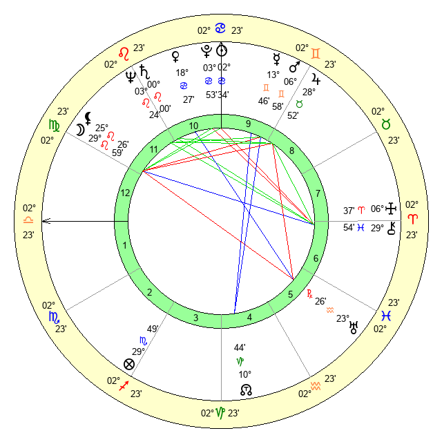 | Sun | 2 Cancer 34 | 3 Cancer 26 | 16 Libra 48 |