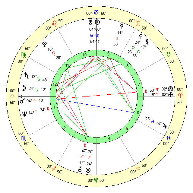 | Moon | 24 Virgo 13 | 23 Taurus 52 | 24 Gemini 56 |
