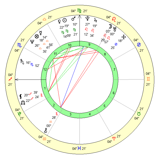 | Sun | 19 Virgo 9 | 20 Virgo 11 | 28 Scorpio 36 |